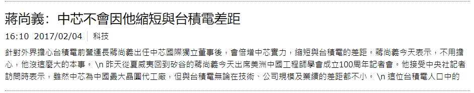 2016年,蔣尚義便從台積電退休了,年底加入中芯國際任獨立非執行董事。