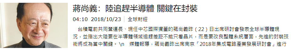 蔣尚義曾多次公開發言,向大陸喊話先進封裝對於應對中美關係變化、克服芯片技術的瓶頸的重要意義。