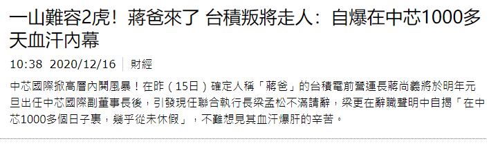 最終,兜了一圈,沒有什麼建樹的蔣尚義回鍋,反而高升為副董事長,再次直接領導梁孟松,終於讓後者爆發了。
