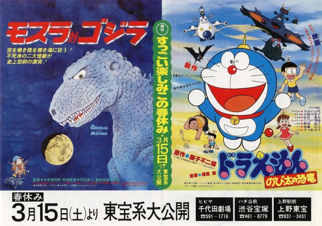 需要注意的是,在日本的怪獸形象中,如哥斯拉這樣聞名世界的許多怪獸形象都帶有着恐龍的元素,恐龍作為古生物,因其經常給人龐大的印象,也經常與怪獸聯繫在一起。《恐龍》作為哆啦A夢第一部劇場版,為了保證票房,東寶採用了和《魔斯拉對哥斯拉》 (モスラ対ゴジラ,1964) 捆綁上映的營銷策略,最終《恐龍》取得了15.5億日元的票房佳績,這個例子也側面證明了恐龍與巨大怪獸在流行文化上的關聯。