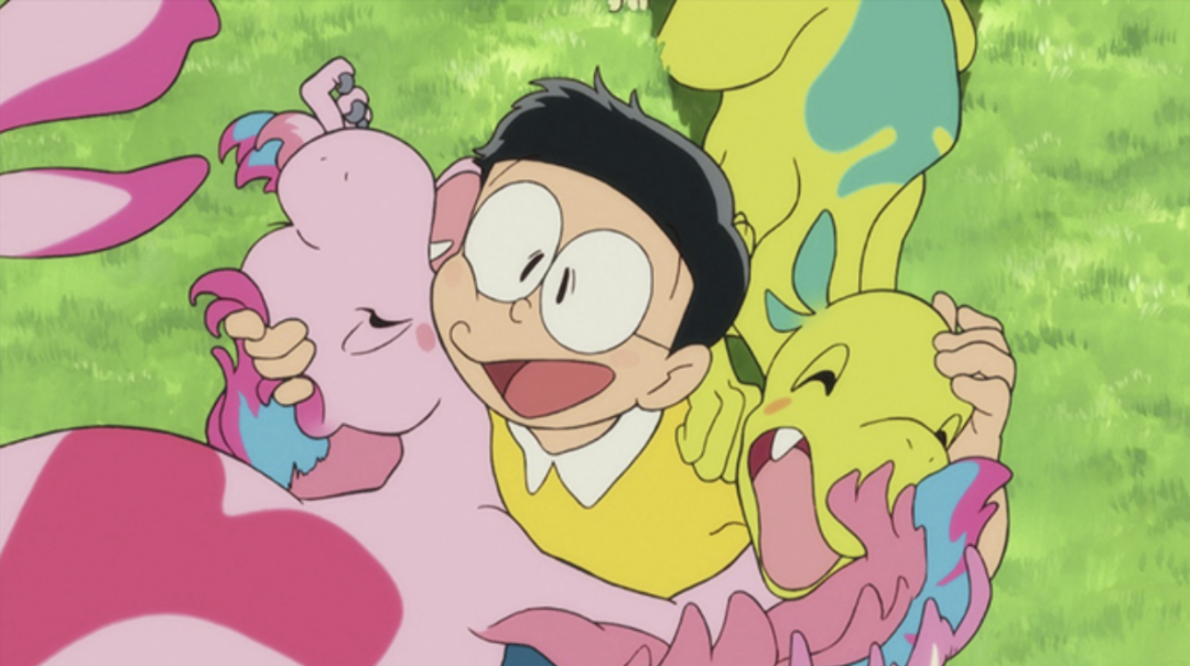 在筆者看來,這個內部邏輯無法自恰的情節並非是那麼重要——即使把皮助刪去,只要稍微改動一下劇本也能讓故事説得通,並非敗筆——但這個情節可以是一個來自敍事外部的彩蛋,它代表的是我們觀眾對《恐龍06》遙遠的記憶,而影片中的大雄也確實夢到了似乎來自另一個世界的往事。