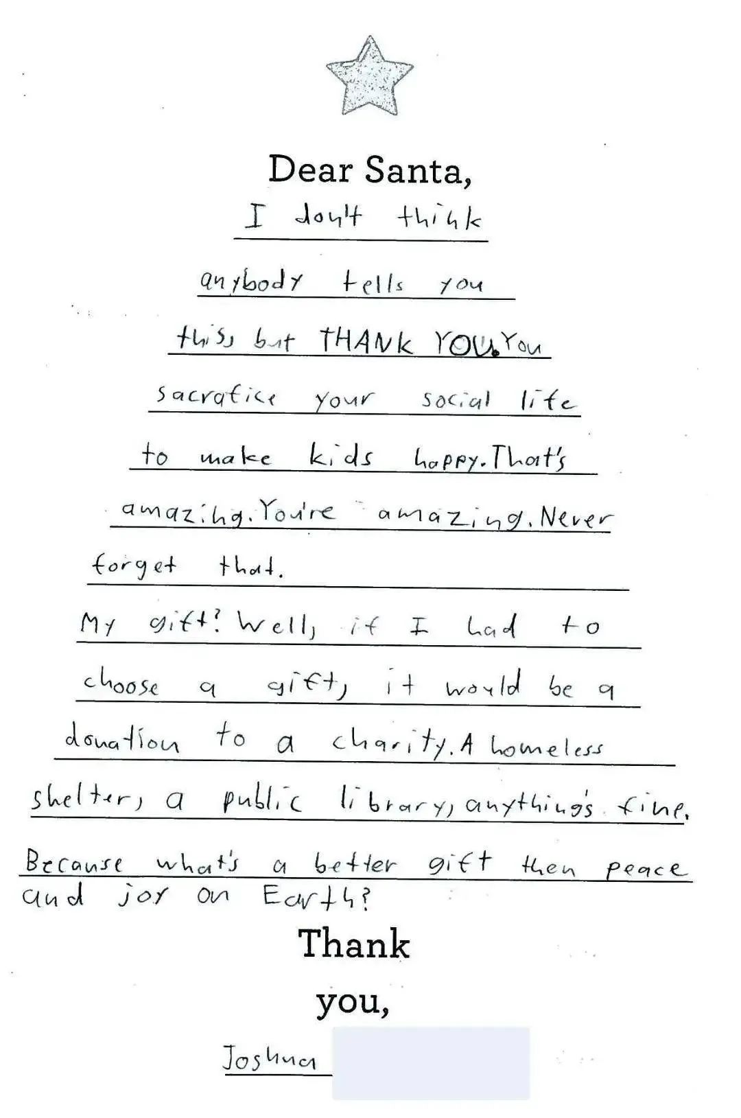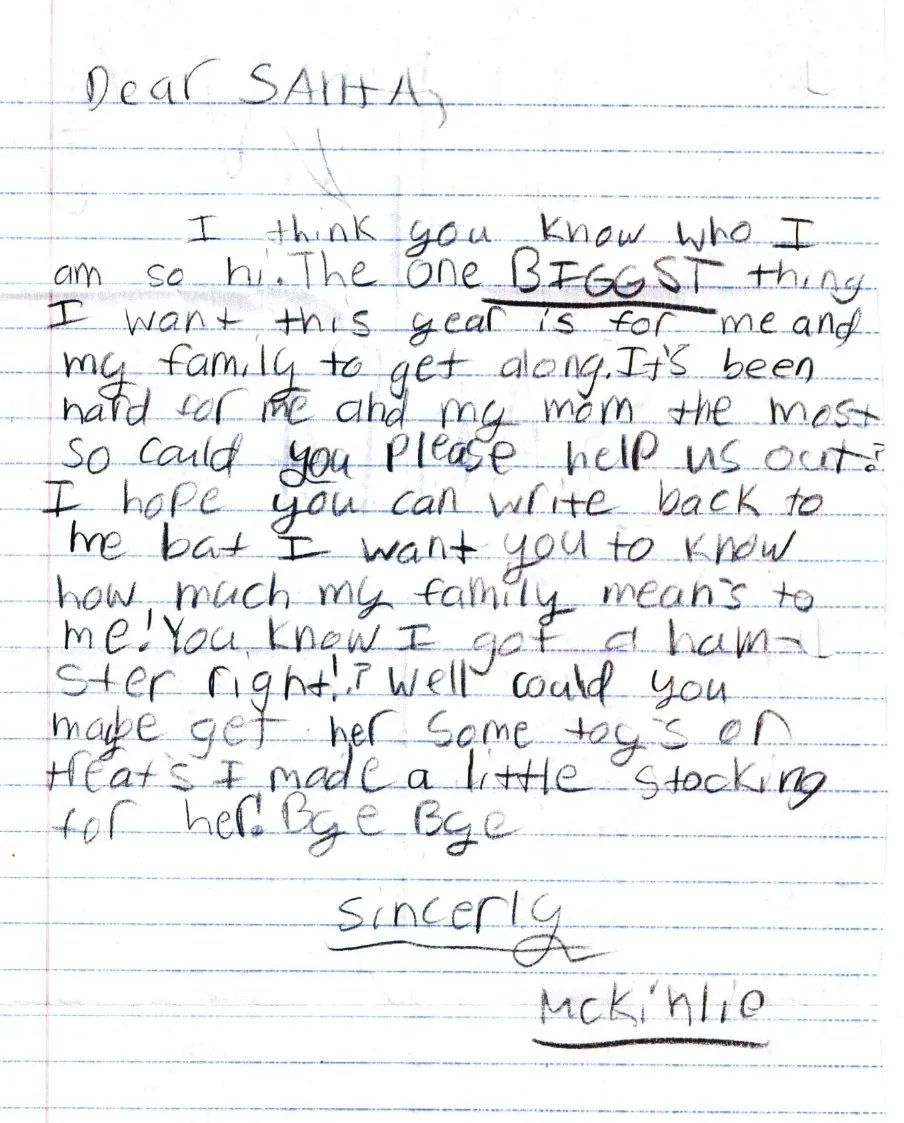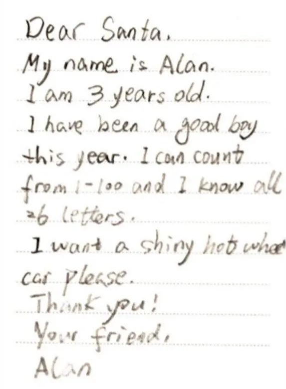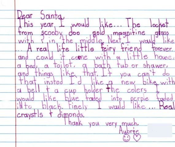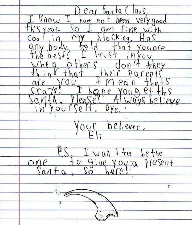 孩子們會在這封信裏,把自己一年的收穫分享給這個永遠見不到面的老朋友,並許下願望,在聖誕節前把信寄出,默默期待自己在聖誕那天醒來時,能在牀頭看見期許已久的禮物。