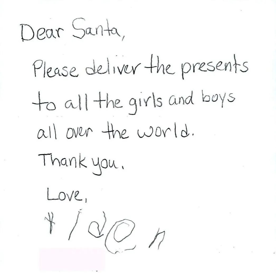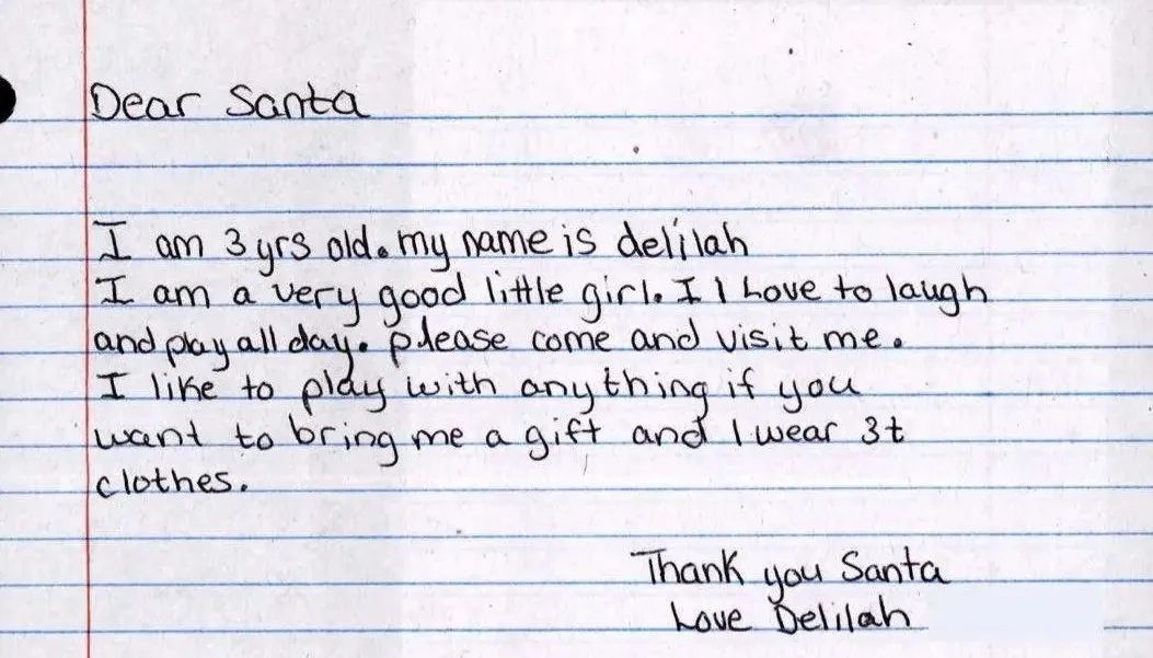 這個聖誕老人當然不是真的,信件也並非會被送到北極,雖然很多孩子們確實會信以為真。實際上,這是美國郵政署(USPS)每年都會進行的“聖誕老人行動”(Operation Santa),為了給那些可能沒有辦法提供超過基本日常需求的家庭提供聖誕禮物。