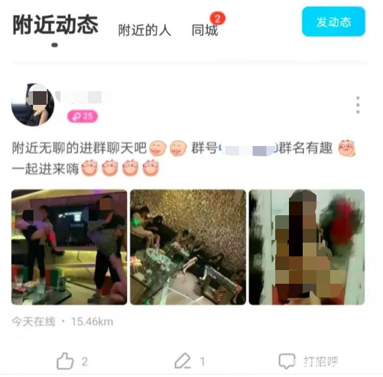 陌陌,是基於地理位置的移動社交軟件,但是根據作者這幾天的體驗來看,陌陌還是太單調了,除了直播之外,還有“認識新朋友”“一起玩遊戲”這兩個功能,但是對陌陌來説,這些都很雞肋。還有就是,三個軟件有一個共同點,都可以發佈動態。從soul和積目的廣場來看,用户把這兩個軟件當作了朋友圈,在其中宣泄、吐槽,而在作者體驗陌陌時,發現了一些不一樣的東西。作者註冊了一個陌陌新賬號,打開陌陌的附近動態,很輕易就可以發現一些擦邊球內容。