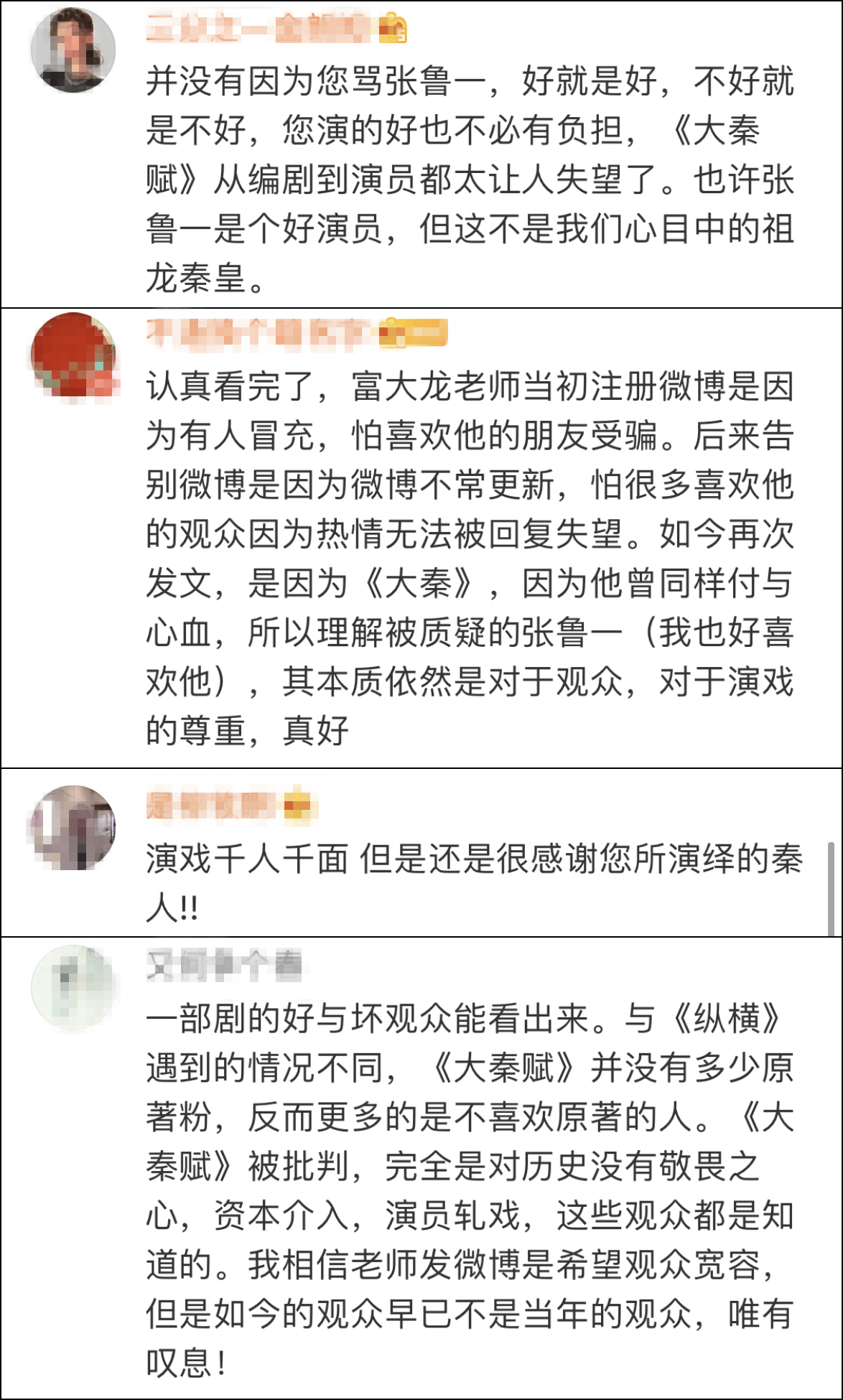 “前秦王”富大龍髮長文為《大秦賦》和張魯一求情,“捧一踩一”讓他負擔這麼大?_風聞