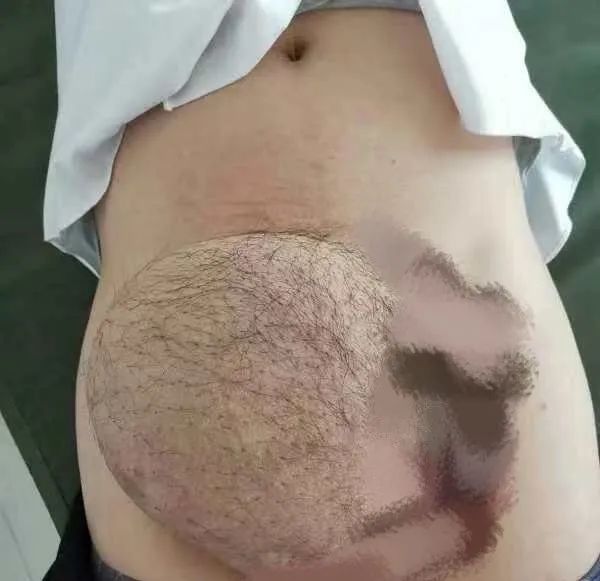 在做檢查過程中大爺的肚子痛卻越來越嚴重了,這才告訴醫生自己陰囊內也劇痛難忍。經檢查發現陰囊腫的已有拳頭般大小——腹股溝疝已嵌頓多時了。