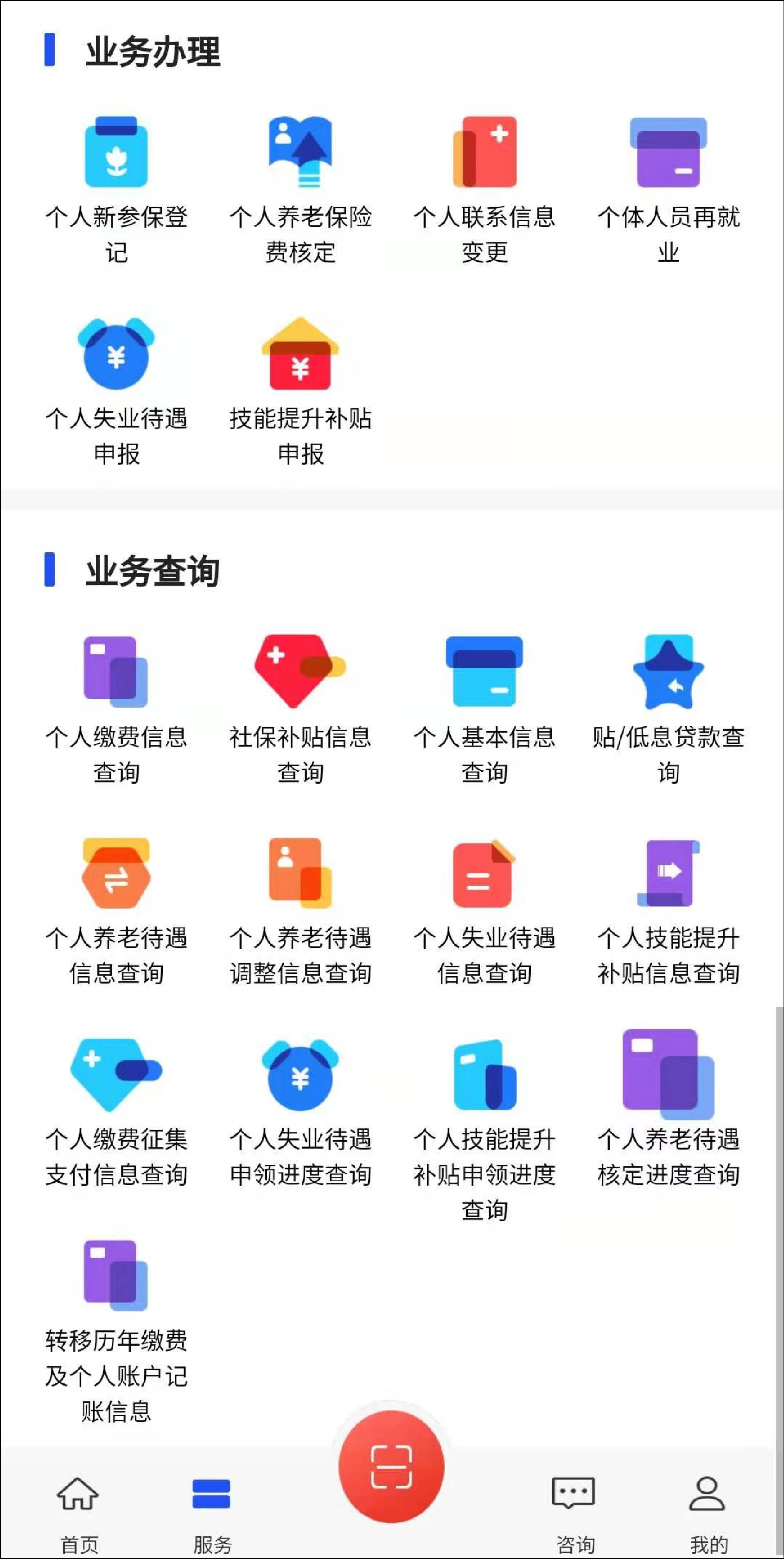 在小程序中,完成登陸後有十多項業務可供辦理。