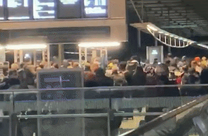 英國記者哈里特·克勞格斯頓(Harriet Clugston)拍下了自己身邊的一幕。人們在倫敦的聖潘克拉斯火車站聚集,準備乘坐火車前往利茲地區。