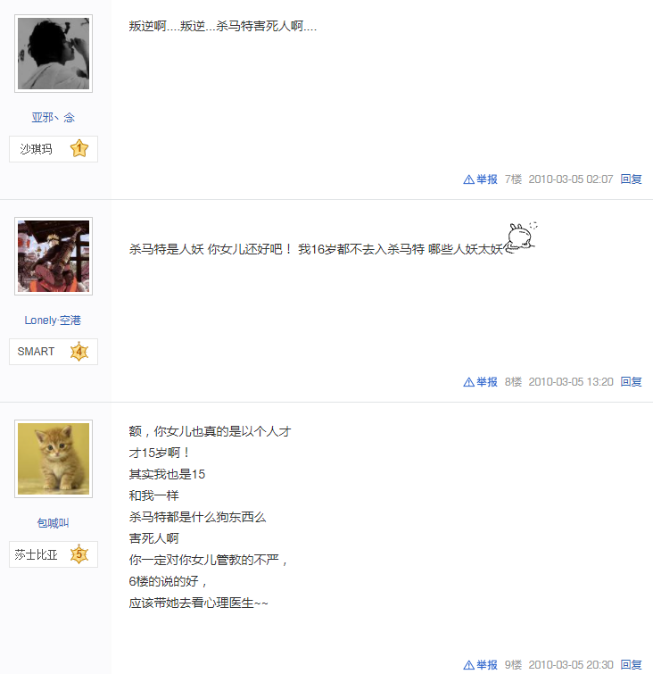 甚至還建議一位母親“應該儘快帶玩殺馬特的女兒去看心理醫生。”