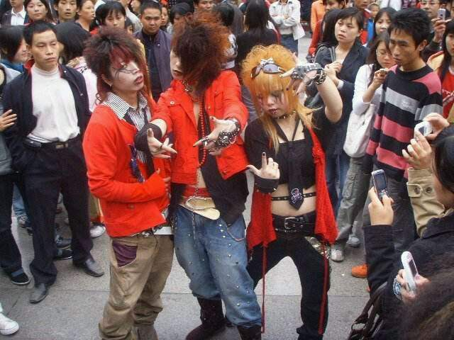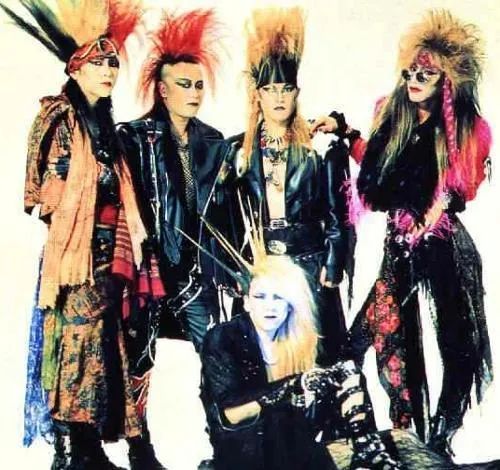 怪異的髮型和穿搭,是在模仿80年代末日本的“視覺系搖滾”:
