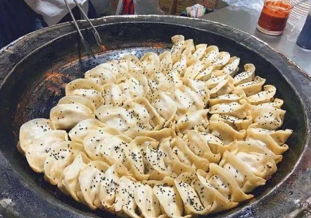 鍋貼以時令蔬菜和肉作為餡料,包成餃子狀後下鍋煎至底部焦熟,味道鮮美,酥脆爽口。