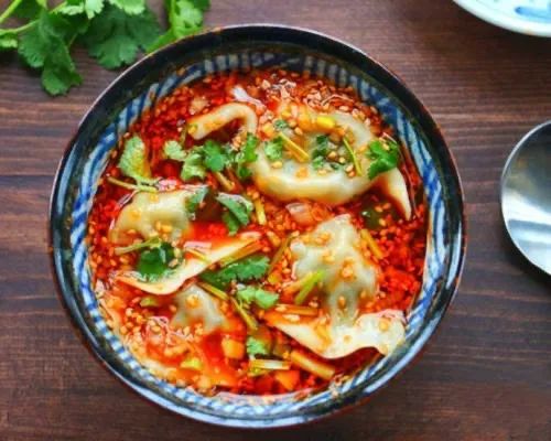 酸湯水餃是西安夜市上的一大特色,通紅的酸湯讓人一眼便知其十足的酸辣味,餃子既可下肉餡的,也可下海鮮餡的。一般酸湯裏的水餃都呈花邊疙瘩狀。