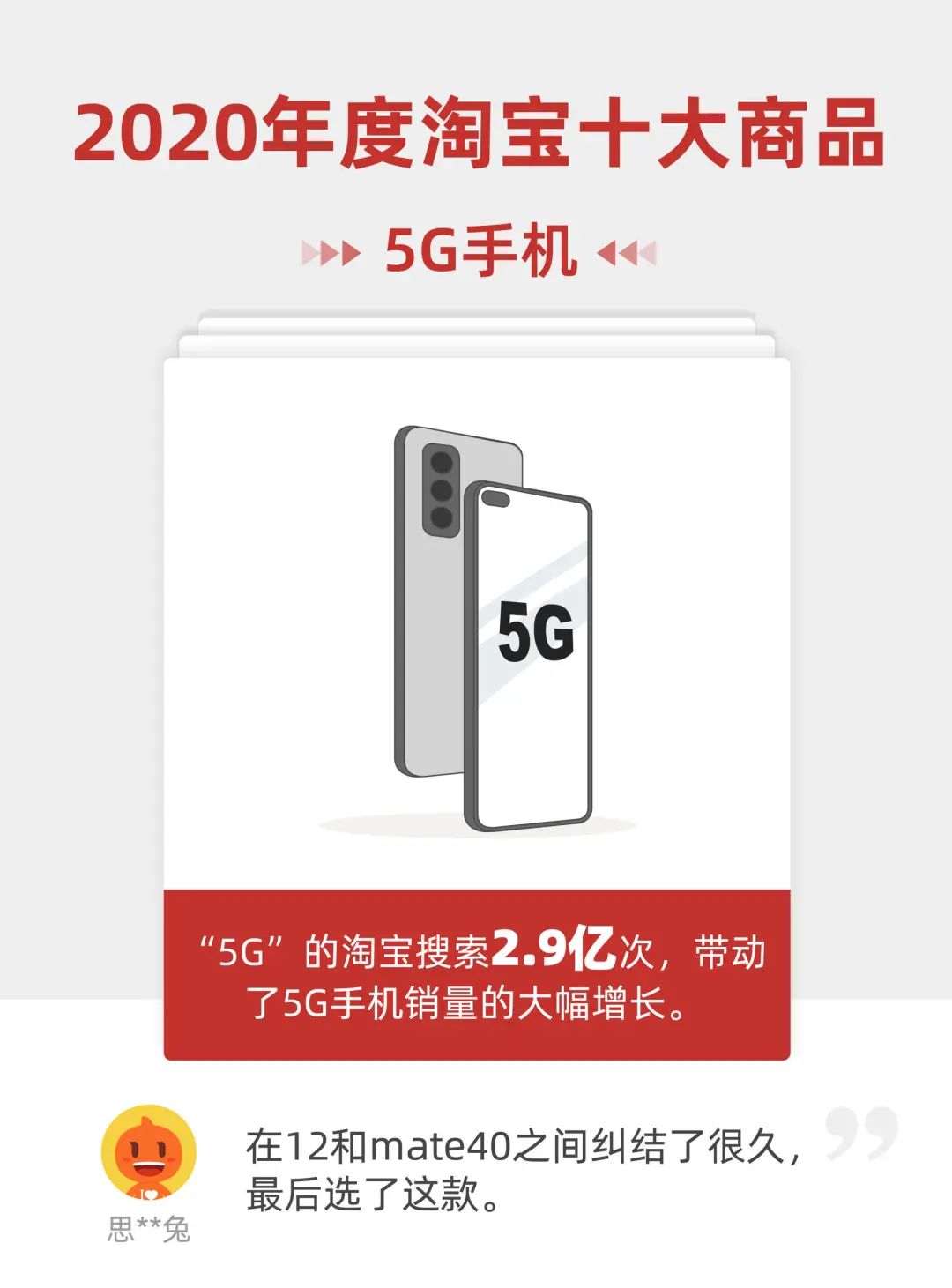 淘寶大數據顯示,今年5G搜索2.9億次,去年打工人還在觀望的5G市場,今年在疫情的衝擊之下,反倒給了打工人一個對自己好一點的理由。