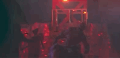 一番纏鬥,長舌鬼被推出了大樓,千鈞一髮之際眾人又重新關上了鐵卷門。