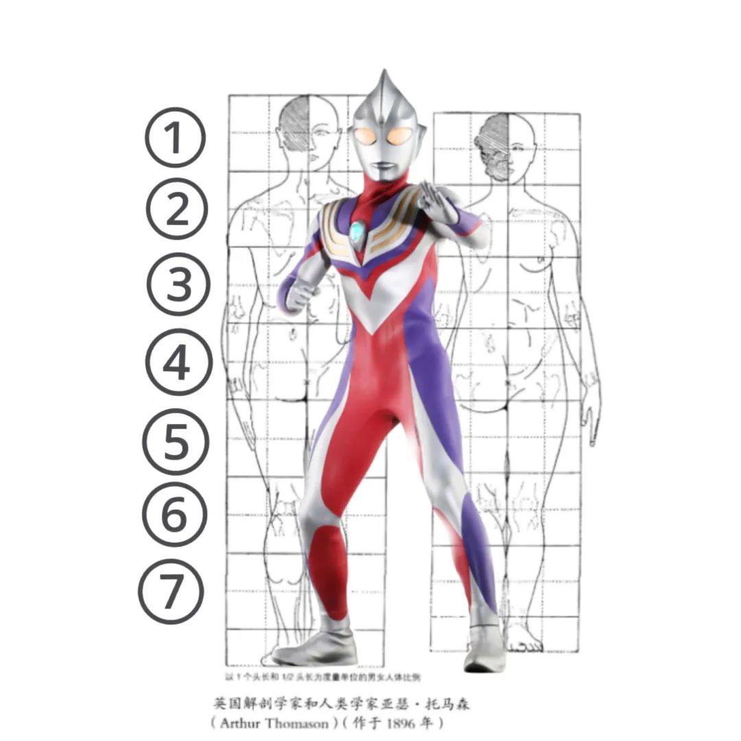 由於體格差異,亞洲人很少存在西方古典審美中的九頭身或八頭身體態。因此,成田亨就把奧特曼做成了古希臘雕塑中的七頭身。