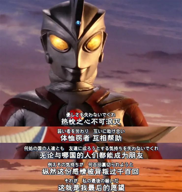 在廣受歡迎的迪迦奧特曼中,在第28話裏,主角大古甚至喊出了:“這就是是答案嗎?我想守護這些人?因為他們是夥伴?我愛大家!”