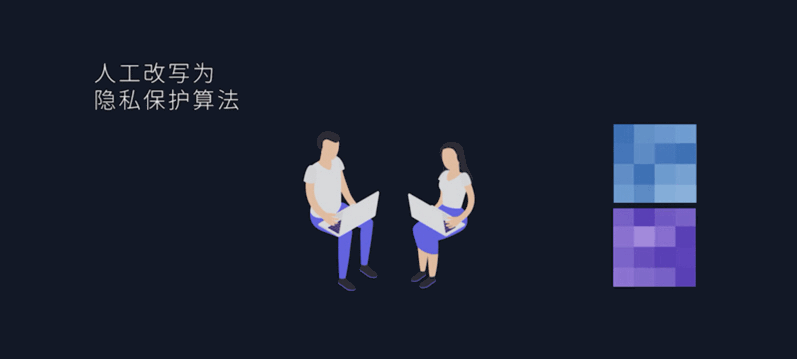 一般人能看到的表象是,將AI的各類算法被改寫成的隱私保護的專屬算法,比如XGboost算法改寫成聯邦XGboost算法,堆算法工程師的人力,用手工逐個改寫模型,有可能還需要重新組建一支專門做隱私保護機器學習的團隊。
