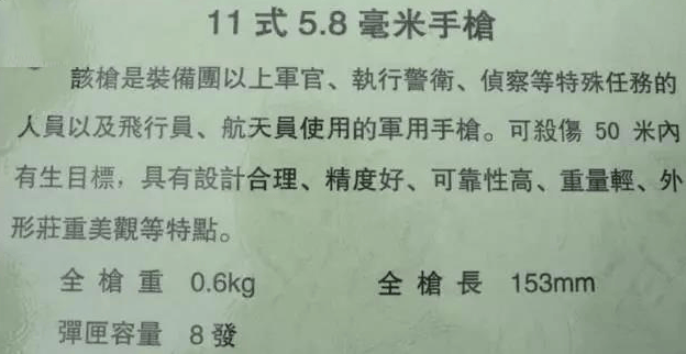 ▲駐港部隊開放日上11式手槍的簡介