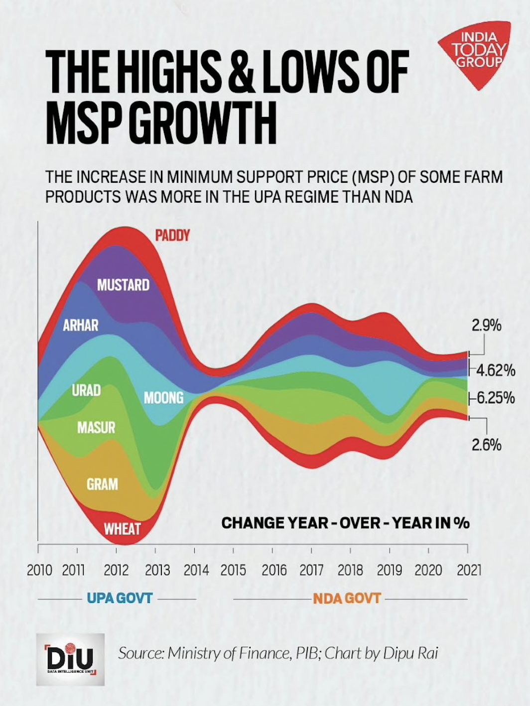 ● 最近10年最低支持價格MSP的波動曲線 / indiatoday