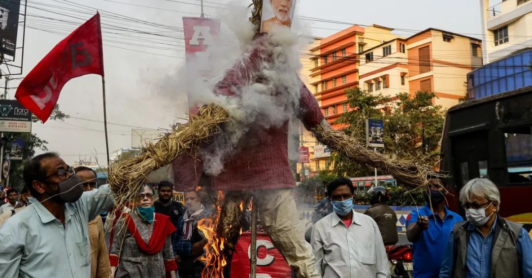 印度首都新德里的農民抗議已經拉鋸了三個星期。農民和政府之間的五輪談判都宣告失敗。在憤怒的口號聲中,莫迪的畫像被燒燬。警方出動水炮車和催淚彈,不僅沒有成功將農民“勸退”,反而火上澆油。