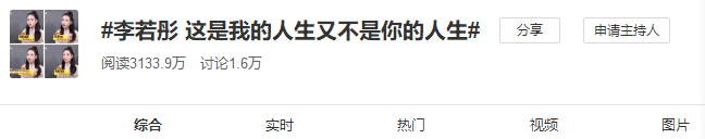 最近,李若彤在接受採訪時,回答了記者關於結婚生小孩的問題。她灑脱的回應:“你管我,這是我的人生,又不是你的人生”。