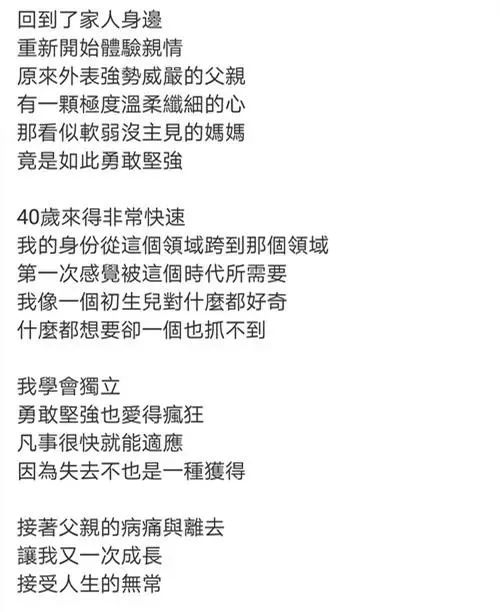 53歲那天,曲家瑞曾經在微博上分享過一段自白。