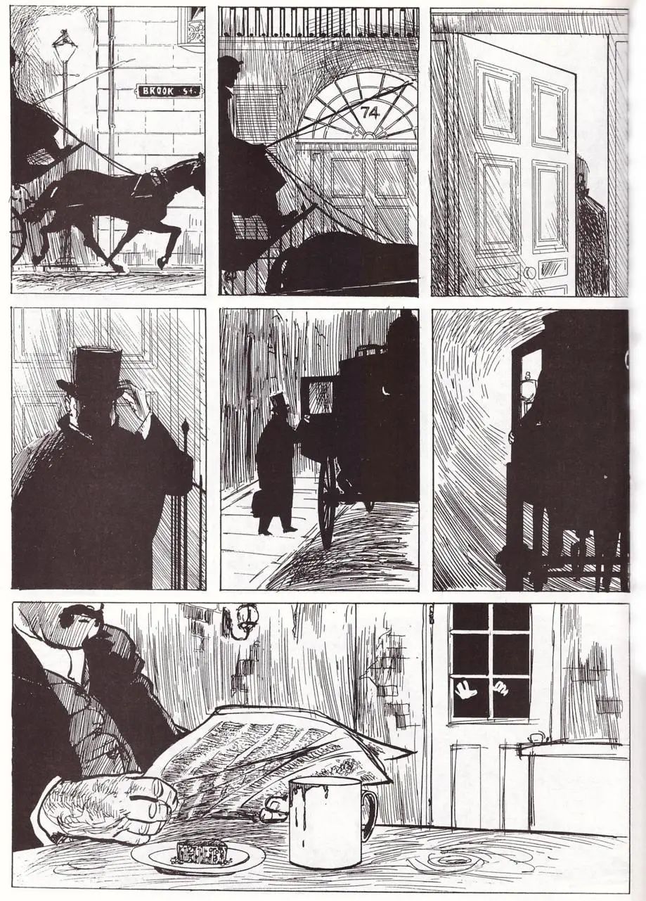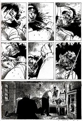 黑白色調既可以減輕血腥程度同時也致敬了維多利亞時期的插畫風格(亦有上色版本)