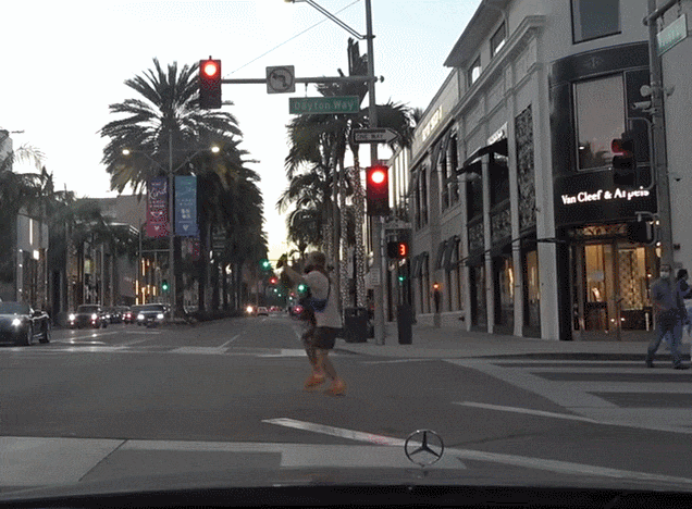 在羅迪歐大道的人行橫道上,