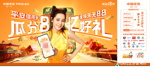 今年夏天,平安信用卡攜手推廣大使迪麗熱巴推出“全城尋找熱8”的娛樂營銷造節活動之後,最近又拿出價值超8億元的持卡消費福利,推出全新升級的“全城天天88”,在歲末辭舊迎新之際再次帶動全民消費的狂歡。