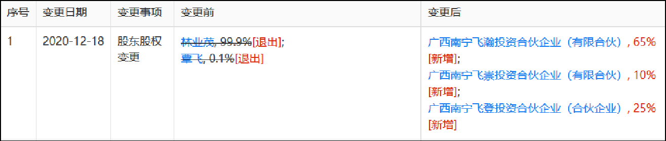 但12月18日的工商信息顯示,該公司股東已由兩位自然人變更為三家合夥企業。