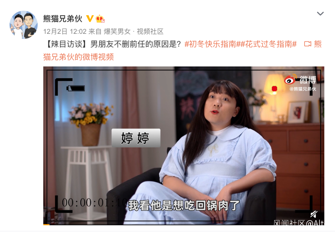 @童瓜 和@向夏 是一對從記者轉行到搞笑幽默領域的好兄弟組合,2018年末開始搭夥至今,兩人合作運營的@熊貓兄弟夥 已經在微博上積累了195萬粉絲,以“鬥嘴吵架”為樂的《辣目訪談》有着一大批忠實擁躉。