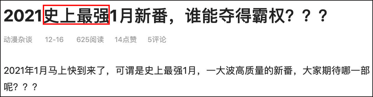 以及即將到來的2021年1月新番,都逃不出“史上最強”這種已經爛大街的名號,似乎已經成為大家在形容某一季新番動畫陣容時的“標配”。