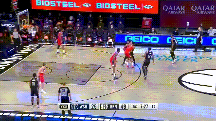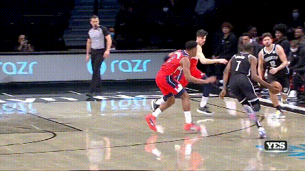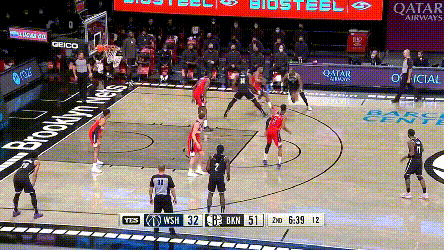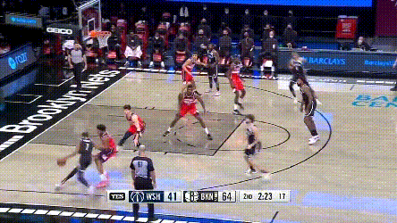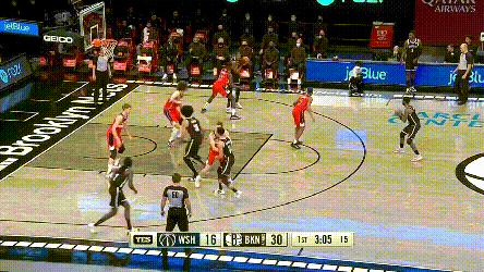 可以理解納什的意圖:歐文與KD高位弧頂伺機,後場摘下防守籃板逮着機會兩人快下上分或者追身三分的戲碼新賽季定不會少。而對手一旦及時退守第一波反擊受阻,第二波等隊友落位由喬哈以及丁威迪掛掩護跑幾個無球尋找空位定點出手機會,阿倫小喬丹順便掩護順下吃餅。最終第三波還有歐文與KD的持球進攻能力收割託底。兩場季前賽看下來,進攻基本盤層次與理念大致能看出點雛形,籃網在進攻豐富度上確實打出點東西。