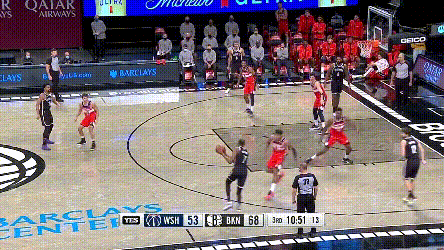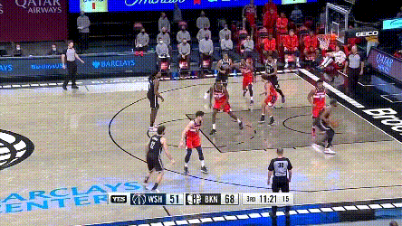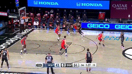 下面這兩球都是中鋒蹲坑被針對的典範,新賽季籃網的球迷要做好心理準備,這種簡單掛一道掩護就被射穿的戲碼會看的非常痛苦:
