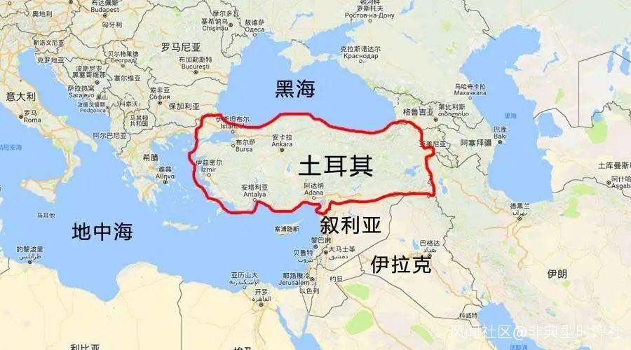 土耳其作為一個橫跨亞歐兩大洲的國家,其北臨黑海,南臨地中海,西臨愛琴海,與敍利亞、伊拉克、格魯吉亞、亞美尼亞、阿塞拜疆和伊朗接壤。可以説土耳其是連接歐亞的十字路口,其地理位置和地緣政治戰略意義極為重要。