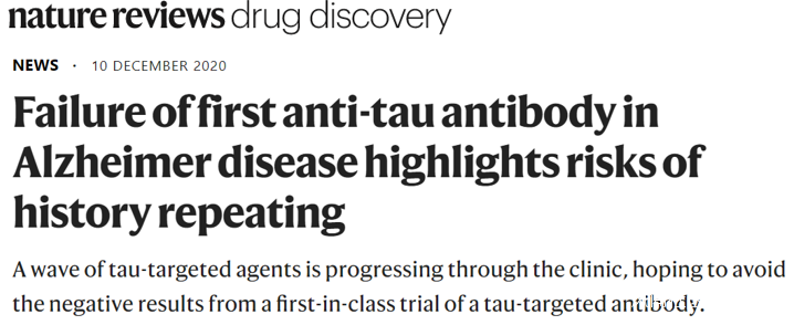Asher Mullard. Failure of first anti-tau antibody in Alzheimer disease highlights risks of history repeating. Nature Reviews Drug Discovery (2020)