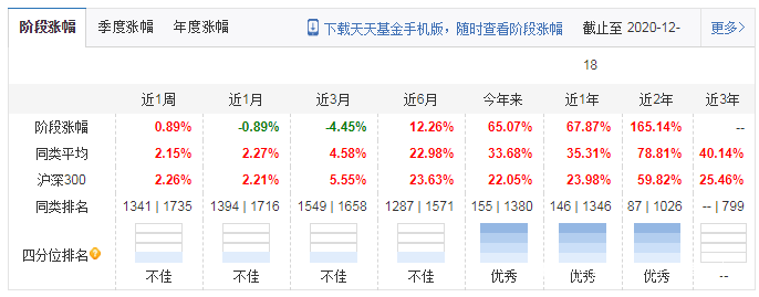 截至2020年12月18日,中歐養老產業混合近3年、近1年、近1月的業績分別為102.83%、44.52%、-3.60%,業績由優秀變為不佳。