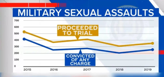 近年來的調查數據也表明,雖然美國軍隊裏投訴性侵的案件增多了,但真正移交軍事法庭被判罪的人卻在減少。