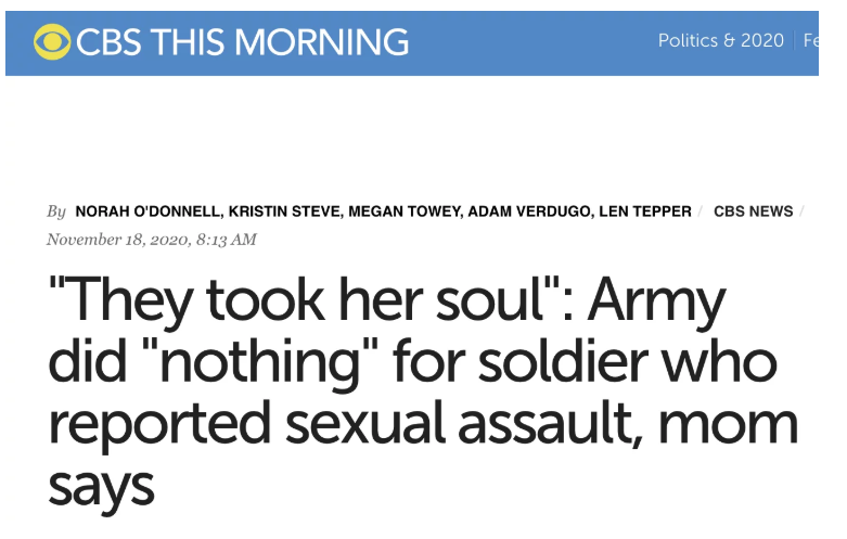 今年12月初,美國軍方公佈的一項調查顯示:胡德堡軍事基地的防性侵系統確實存在嚴重的缺陷,內部已經形成了默許性侵的惡劣氛圍。