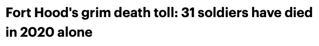 據悉,性侵、打鬥、吸毒等亂象在胡德堡基地層出不窮,僅今年一年因自殺、他殺、事故等身亡的士兵便多達31人。