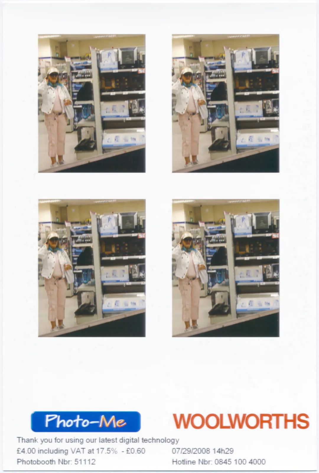 鏡子會反射外面的世界,而照相亭裏拍下來的也就是鏡子裏反射的畫面。比如在這張照片 中,你可以看到一位女士在購物,
