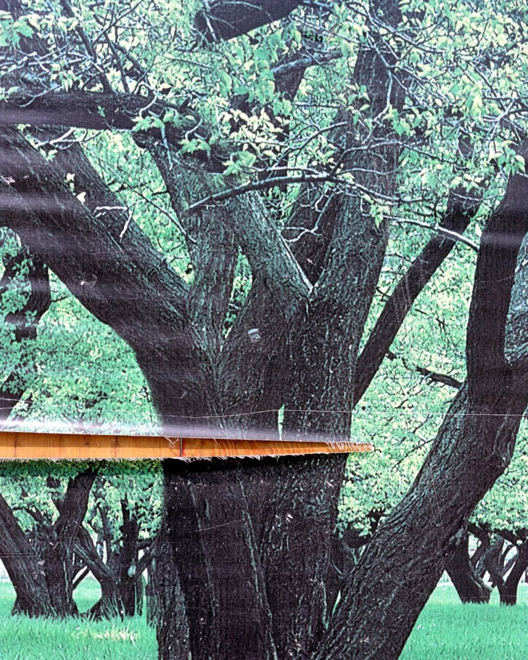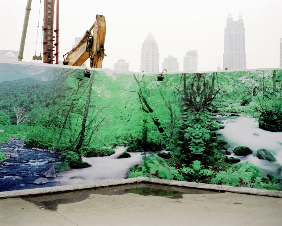 這樣的廣告牌 其實在上海並不難找。2005年的時候,上海有很多建築工地,你可以看到它們有很多都被這些漂 亮的森林風景圖給蓋住了。 這些樹木呢,你不用去澆灌,不用做任何事 ,它們也一直是綠的 。即使你不小心把樹劃了,比如騎自行車路過時沒注意,“樹”被割開了,它也不會倒下。