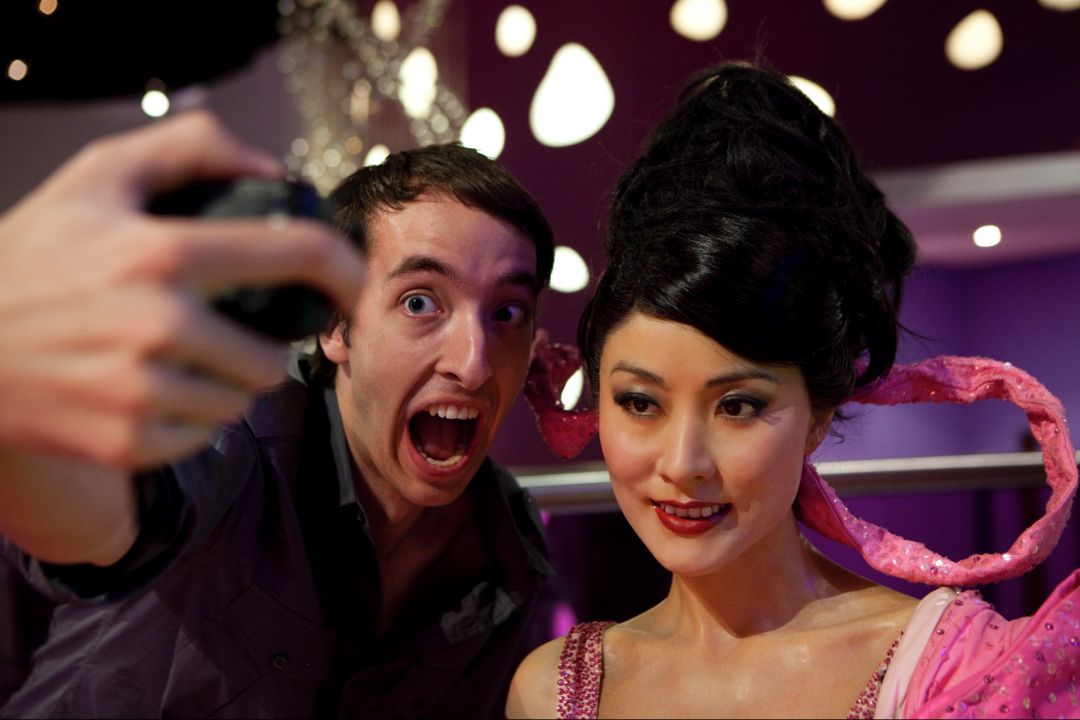 我去找他們合了很多張影,但是我不知道他們為什麼在中國有名,就像也有很多人來找我合影,但是我也不知道自己為什麼有名,我覺得我們可能差不多吧。而且他們其實都是蠟像,不是真的明星,這一點我覺得他們也和我一樣。他們是假的明星,我也是一個假的明星,我覺得我們挺合適做朋友的。