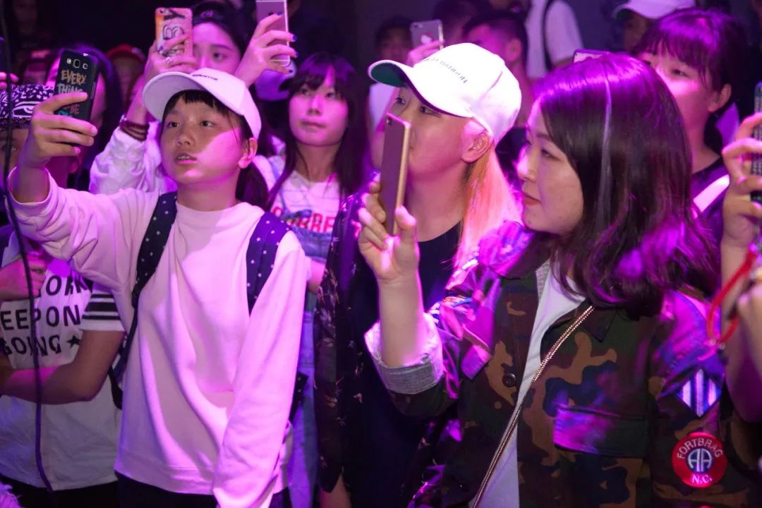 這張照片是在成都的一個酒吧,女孩兒們在拍喜愛的説唱歌手,