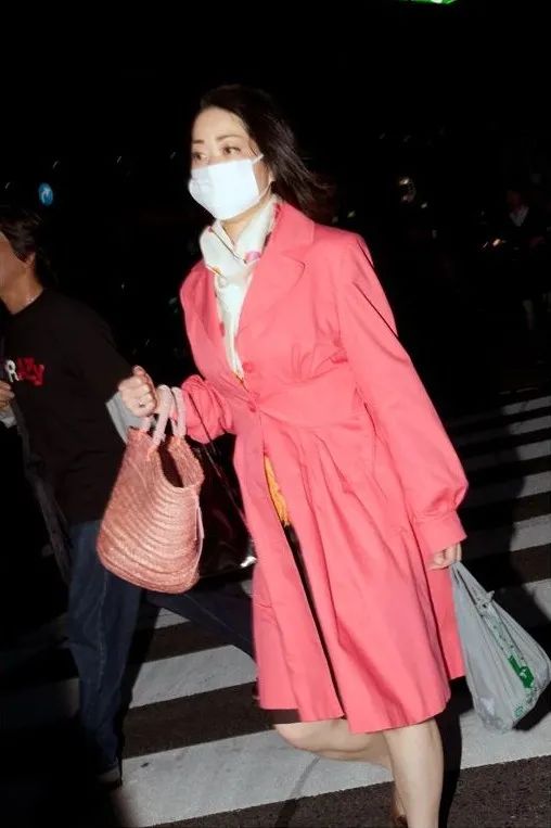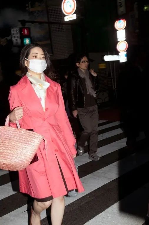 我很喜歡他們每天的精心打扮, 比如這張照片中,你可以看到 一位女士穿着一件粉 色大衣,戴 着口罩,手裏還拎着一個粉色的包。