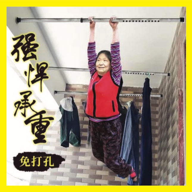 比如這張貼紙照片我就很喜歡,你看這個阿姨在這裏,顯得這個晾衣杆確實非常結實。