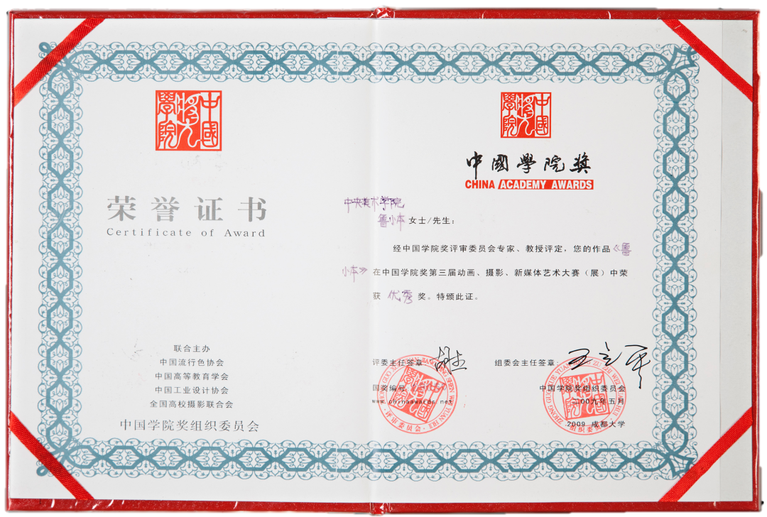 還有一次我得了一個“中國學院獎”,英文叫Academy Awards,聽上去很厲害的樣子,