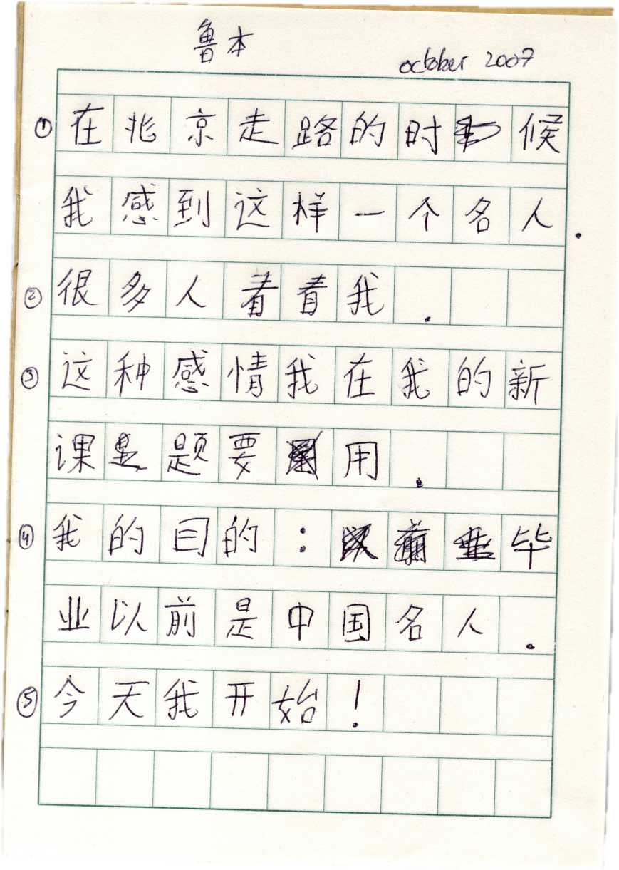 我覺得這個想法挺好,那個時候我在學習中文,我就在本子上寫了一個小目標: 畢業以前成為中國名人!
