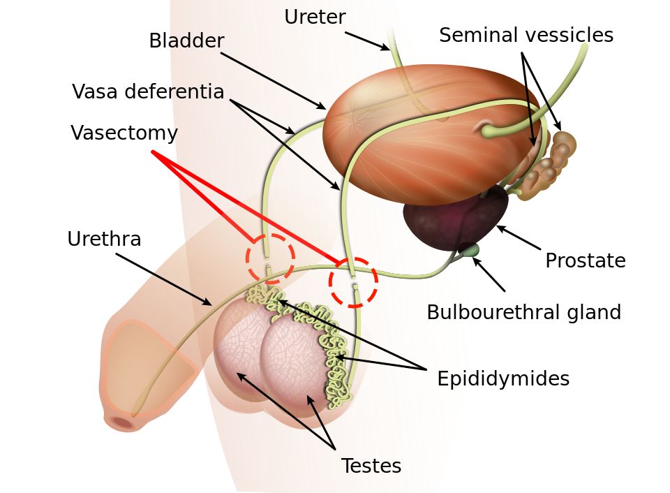 (紅色畫圈地方為輸精管)圖片源自:Wikipedia