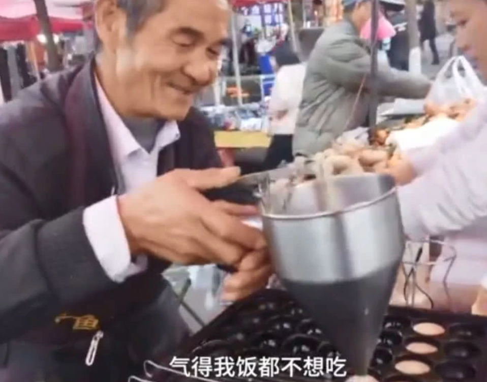 大爺坐在簡陋的小攤前,慼慼哀哀的哭訴。